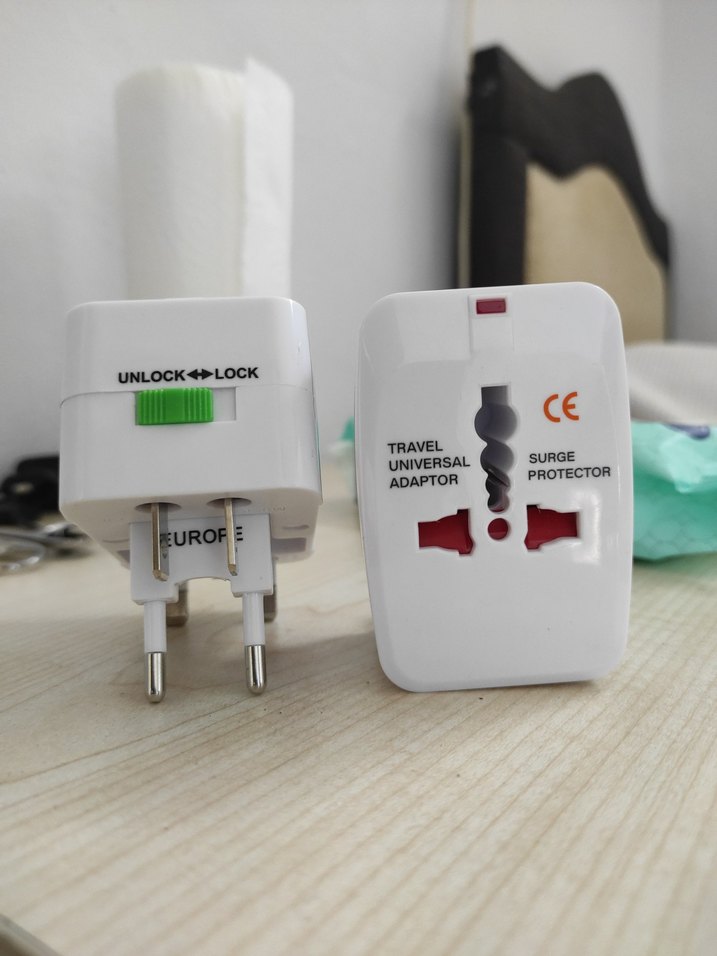 Kilitleme mekanizmalı, çoklu priz uyumlu beyaz evrensel seyahat adaptörü ve aşırı gerilim koruyucusu ⚡ Adet fiyatıdır.