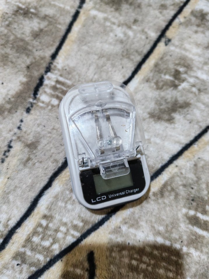 Çeşitli cihazlar için şeffaf koruyucu kapaklı beyaz evrensel telefon şarj cihazı. Kompakt ve hafif tasarım.