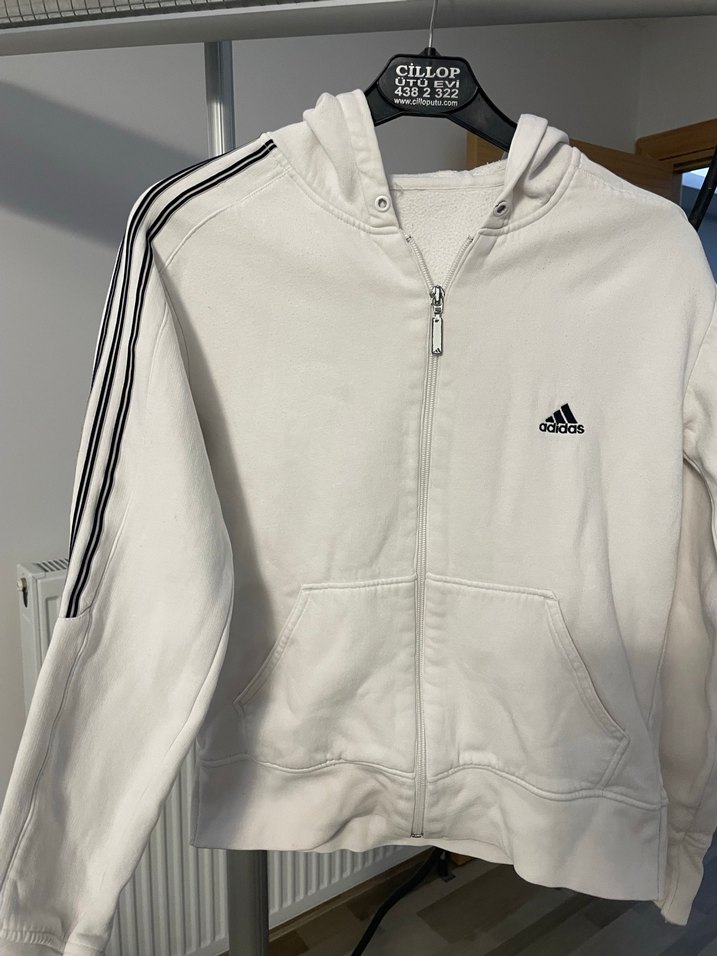 Beyaz Fermuarlı Adidas Kadın Sweatshirt