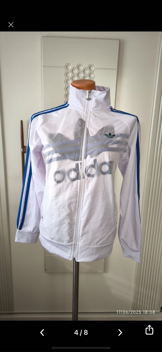 Beyaz Fermuarlı Adidas Uzun Kollu Ceket