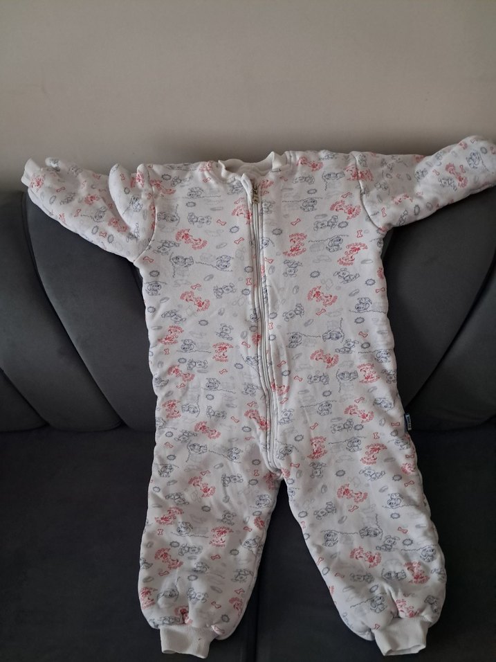 Gri renkte, fermuarlı ve yuvarlak yakalı bebek kız tulumu, yumuşak kumaştan yapılmıştır ve bebeği sıcak tutar. ❄️önünde az lekesi var giymeye engel değil,