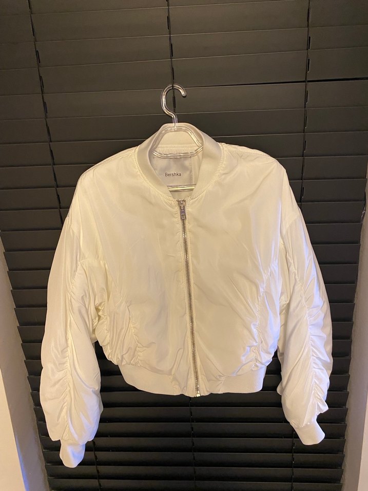 Arkasından leke var görselde göründüğünüz gibi kuru temizleme ile geçebilir fiyatı da bu yüzden daha uygun tutulmuştur onun dışında üründe bir deformasyon yoktur. Fermuarlı, uzun kollu, beyaz kadın ceket. Normal midi boyda, crew neck yakalı✨