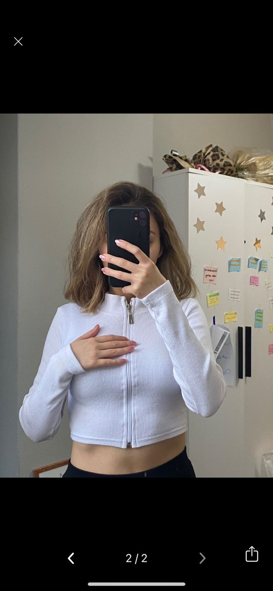 Beyaz fermuarlı crop