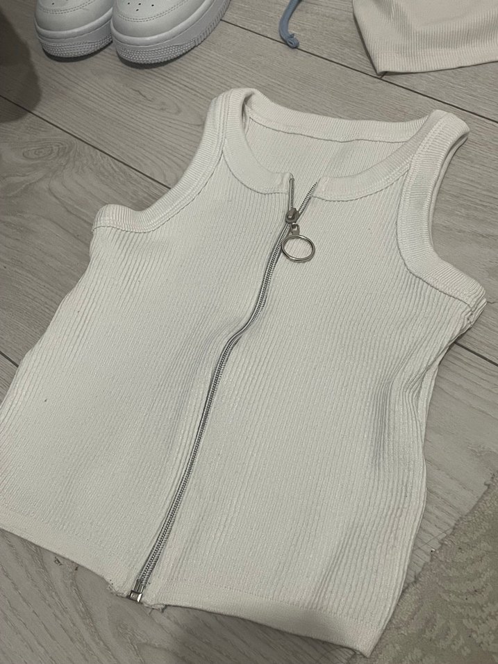 Beyaz fermuarlı Crop