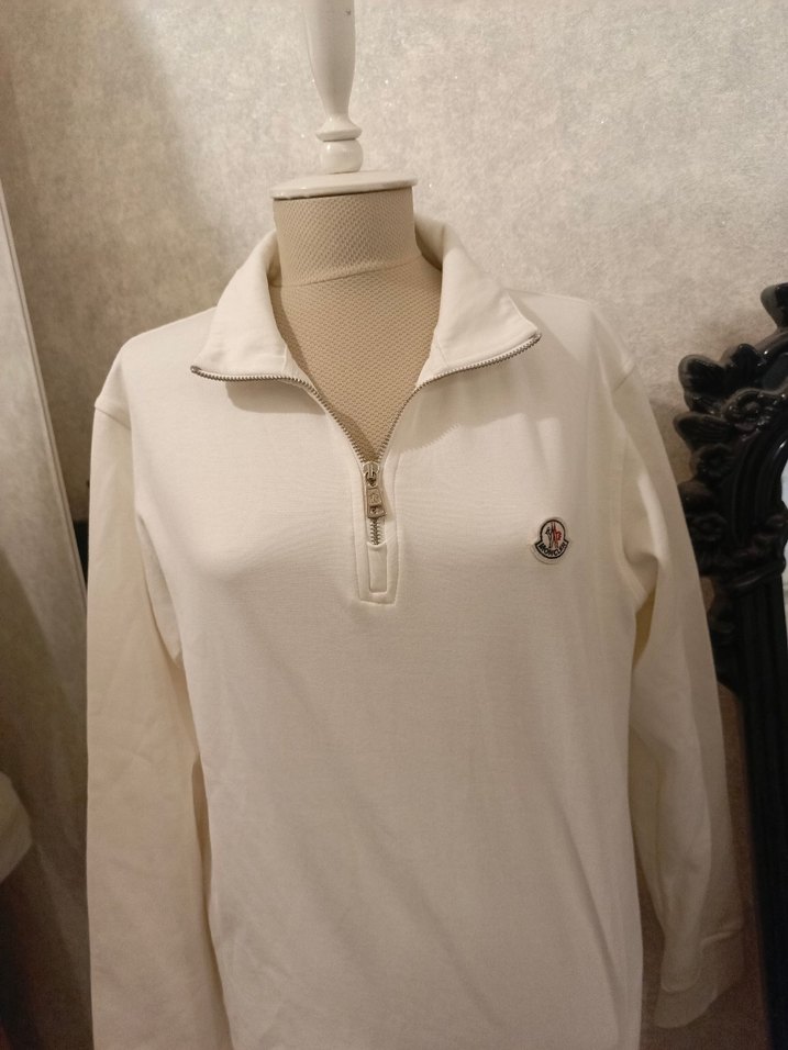 Beyaz renkli, fermuarlı yuvarlak yaka ve uzun kollu erkek sweatshirt. Yumuşak ve sıcak kumaştan, orta boy ve dar kesimlidir.