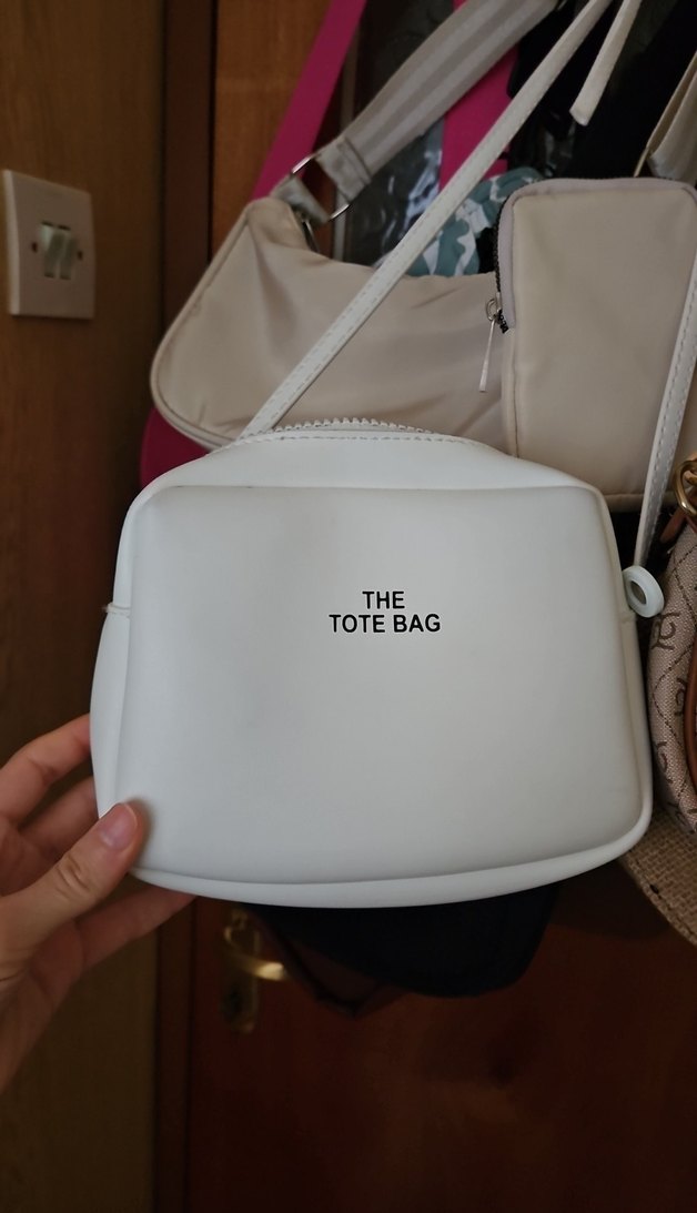 Beyaz renkli, fermuarlı, minimalist baskılı bu kadın çantası plastikten yapılmıştır ve sokak modasına uygundur.