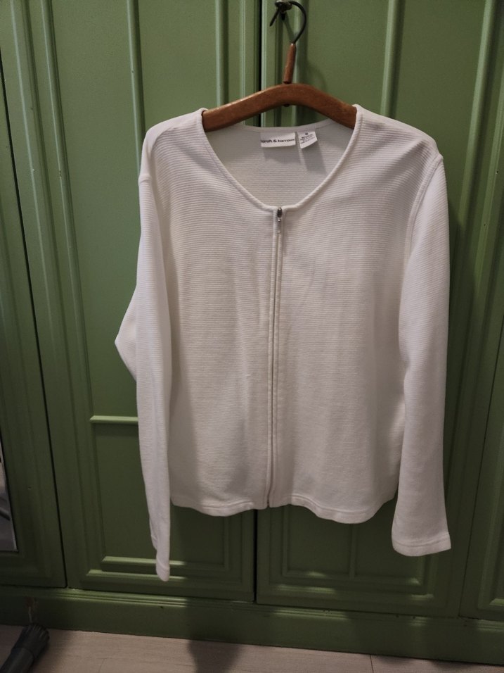 Beyaz Fermuarlı Kadın Keten Hırka