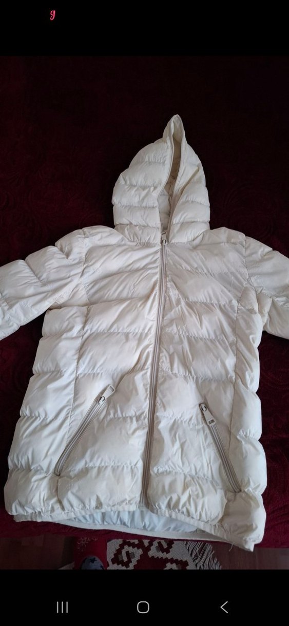 Beyaz Fermuarlı Kadın Kışlık Mont