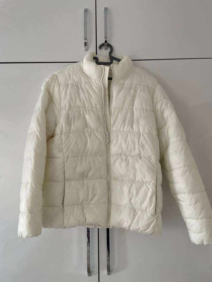 Beyaz Fermuarlı Kadın Kışlık Mont