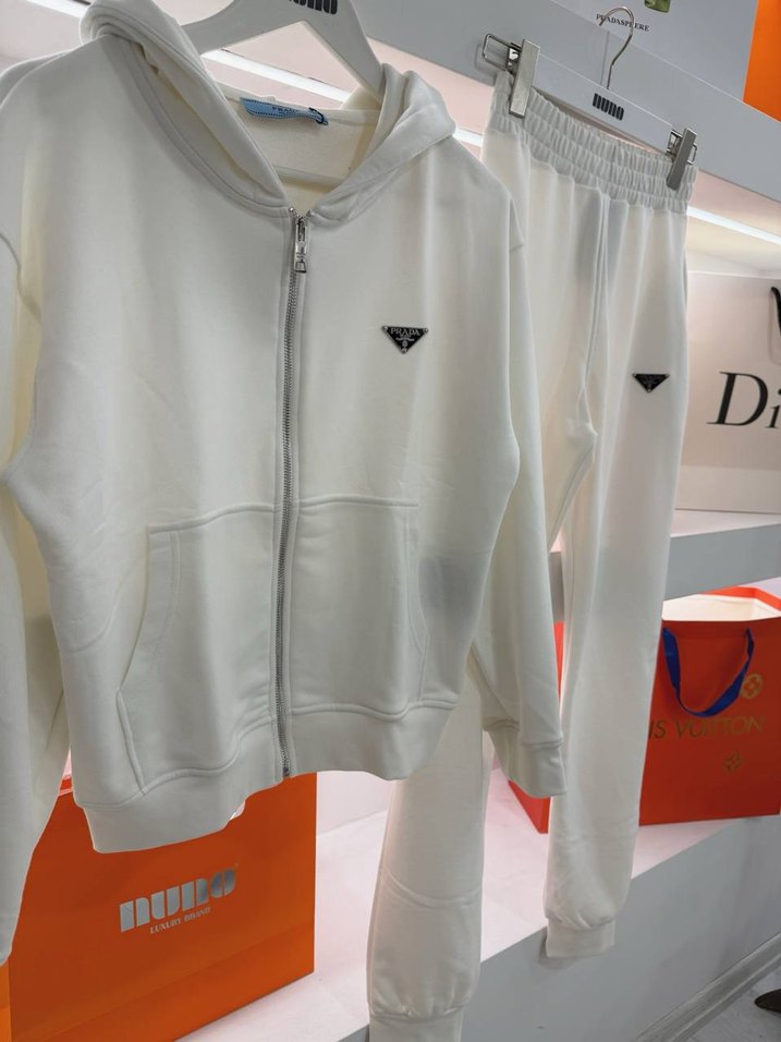 Beyaz Fermuarlı Kadın Mini Eşofman Takımı Prada