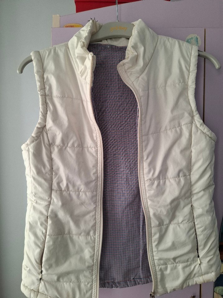 Beyaz, fermuarlı, kolsuz kadın yelek. Sentetik kumaştan, normal midi boyda ve vücuda oturan kesimde, trend sokak tarzına uygun. Bir kaç kez giyildii yırtığı söküğü yok. Fiyatlarda yardımcı olurum Teklif vermeyi unutma Keyifli alışverişler :)