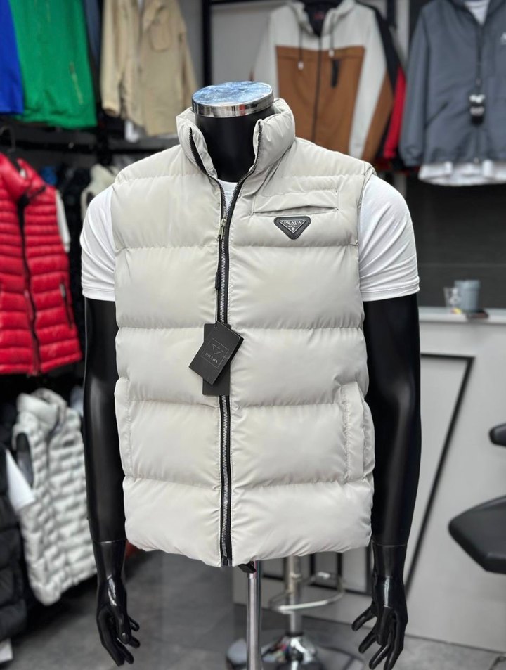 Beyaz Fermuarlı Kısa Kesim Erkek Yelek