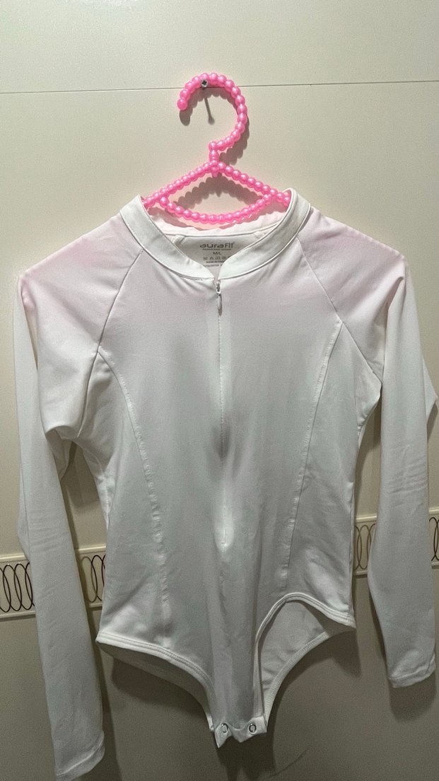 Fermuarlı, yüksek yakalı ve uzun kollu beyaz kadın bluz. Sentetik kumaştan, günlük ve sokak stiline uygun şık kesim. ✨ çıtçıtında sorun var onu ekledim içerde kaldığı için sorun olmaz hiç giymedim