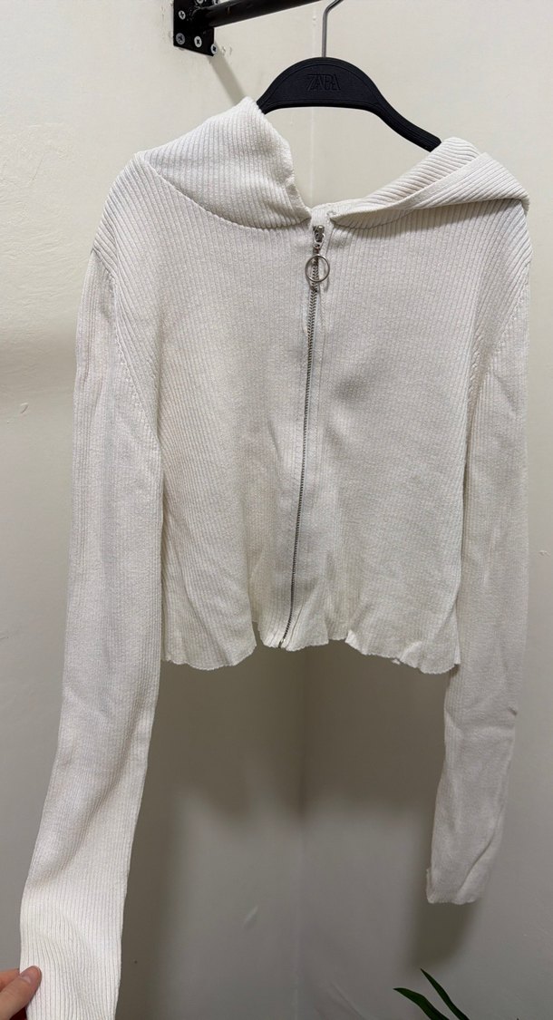 Beyaz Fermuarlı Uzun Kollu Kadın Triko