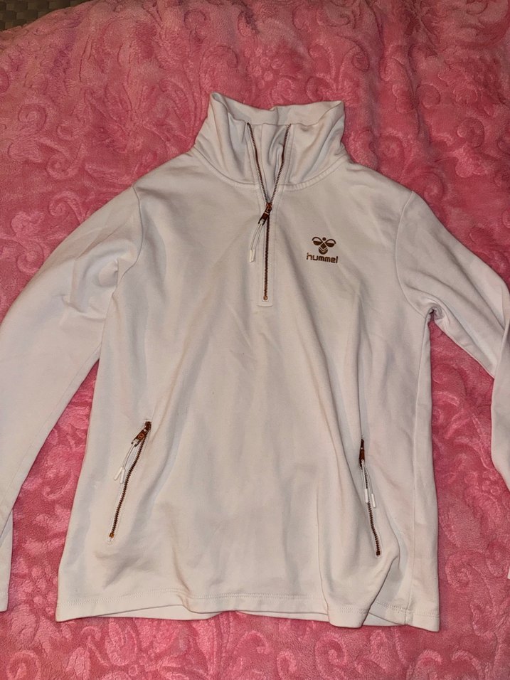Yumuşak kürk dokulu, beyaz fermuarlı yüksek yakalı sweatshirt. Bol kesim, baskılı tasarıma sahip, rahat ve şık bir günlük giyim parçası.
