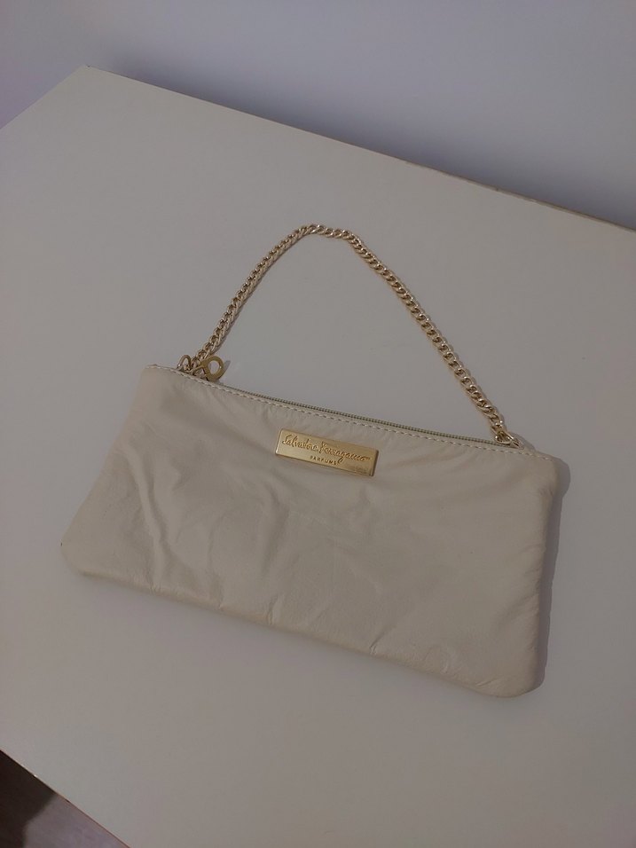 Beyaz renkte, fermuarlı ve altın renk zincir saplı kadın çantasıdır. Yumuşak sentetik kumaştan üretilmiştir, klasik şıklık ve sokak tarzına uygundur.