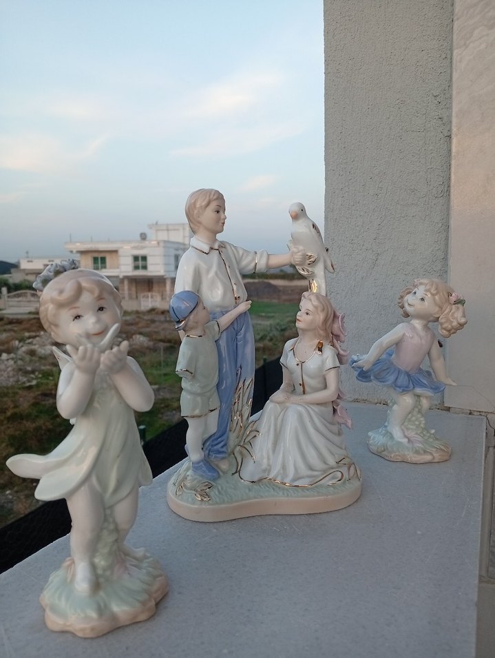 Çocuk figürlerinden oluşan, beyaz ve açık renkli detaylı figürin seti. Dans eden kız ve kuş tutan erkek figürleri bulunur. Birkaç yerlerinde atık olduğundan fiyatı uygundur. iade almıyorum.