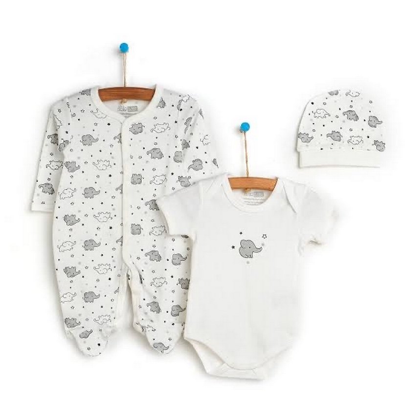 Beyaz fil Desenli Bebek Body Seti