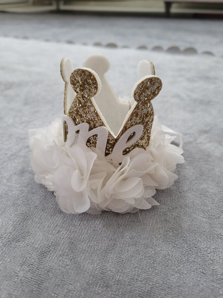 Beyaz Fırfırlı 1 yaş Bebek Tacı