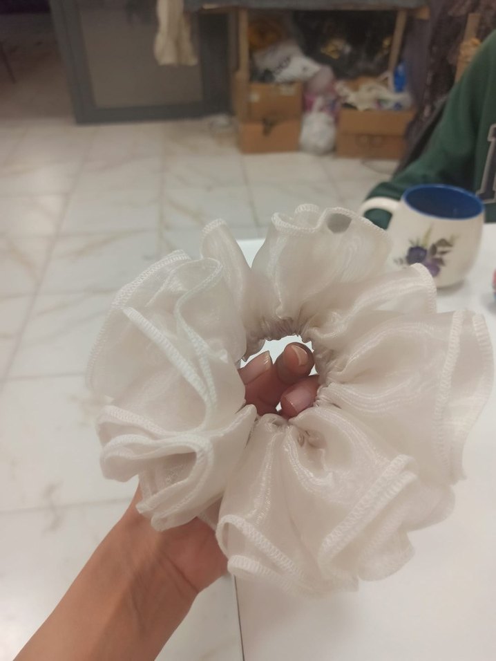 Yumuşak sentetik kumaştan krem, fırfırlı saç tokası, minimal ve bohem tarz için uygun. Siyah renk de vardır