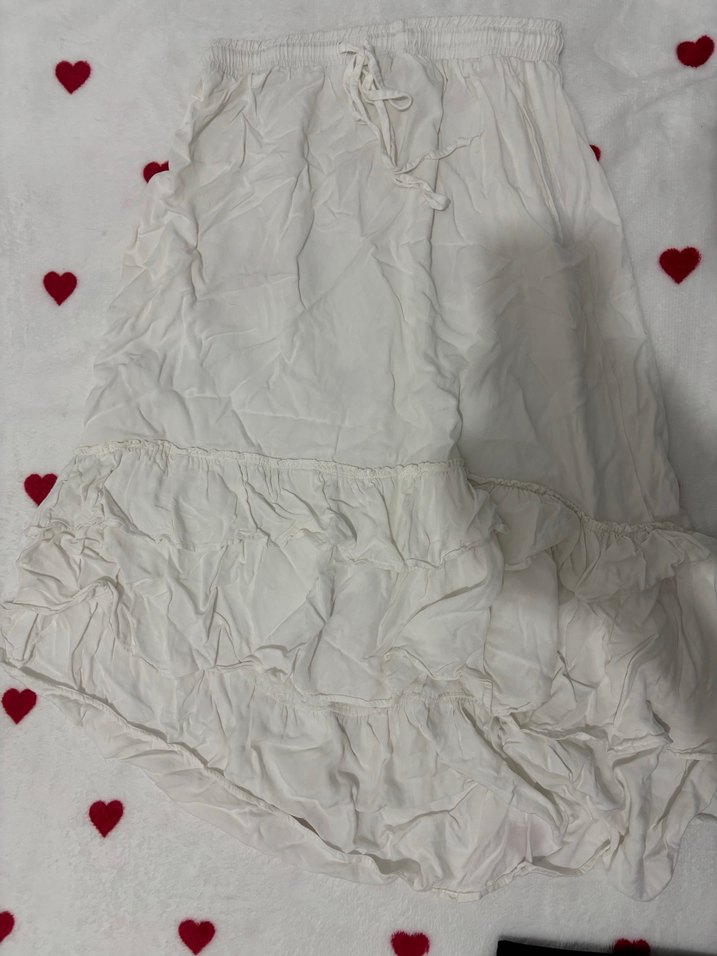 Beyaz Fırfırlı Çapraz Kesim Etek