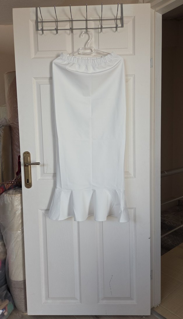 Beyaz Fırfırlı saten Kadın Uzun Etek