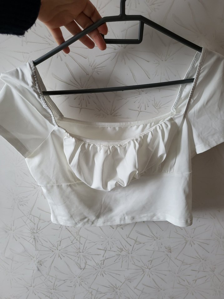 Beyaz Fırfırlı Kısa Kollu Kadın Bluz