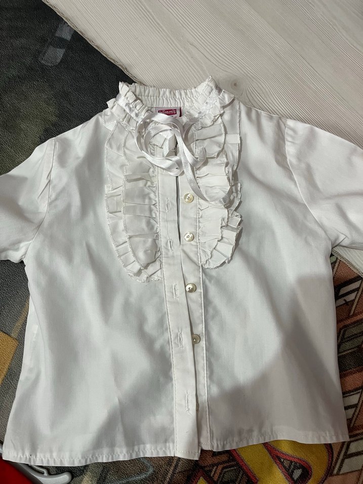 Pamuklu beyaz gömlek, yakalı ve kısa kolludur. Ön kısmında fırfır detayları bulunur. Salaş kesim ve normal midi boydadır, günlük kullanıma uygundur.