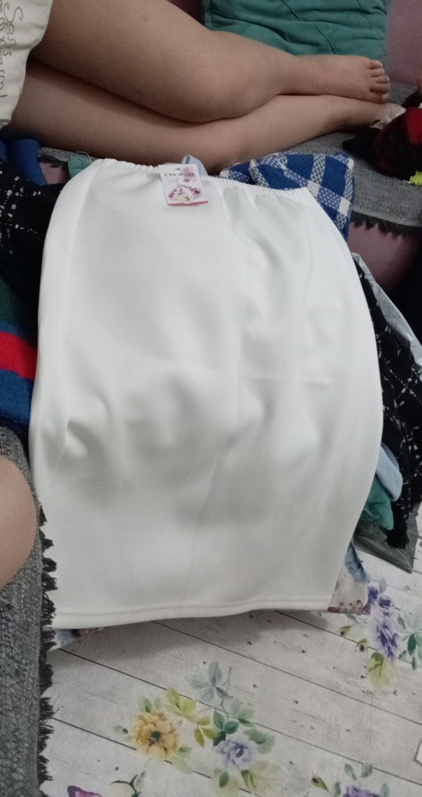 Beyaz, düz renkli hamile eteği, midi boyda ve vücuda oturan kesimde, fırfır detayıyla günlük kullanıma uygun sentetik kumaştan üretilmiştir.