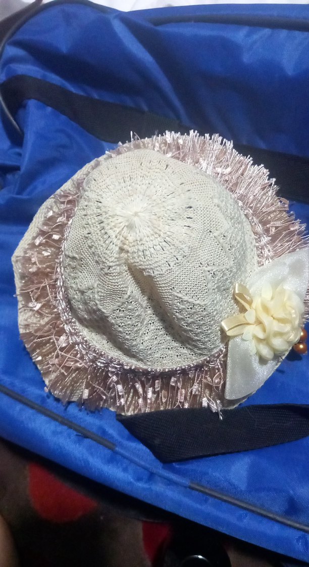 Beyaz örgü dokusu, fırfırlı kenarı ve çiçekli fiyonk detayıyla vintage bohem tarzda kadın şapka.