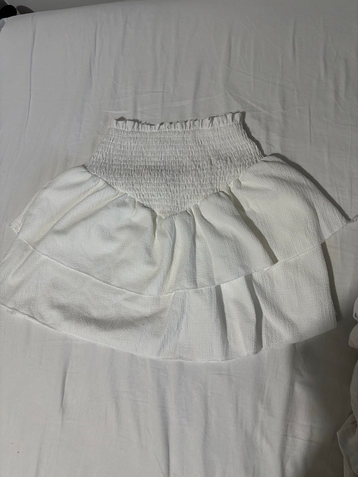 Beyaz Fırfırlı Volanlı Etek