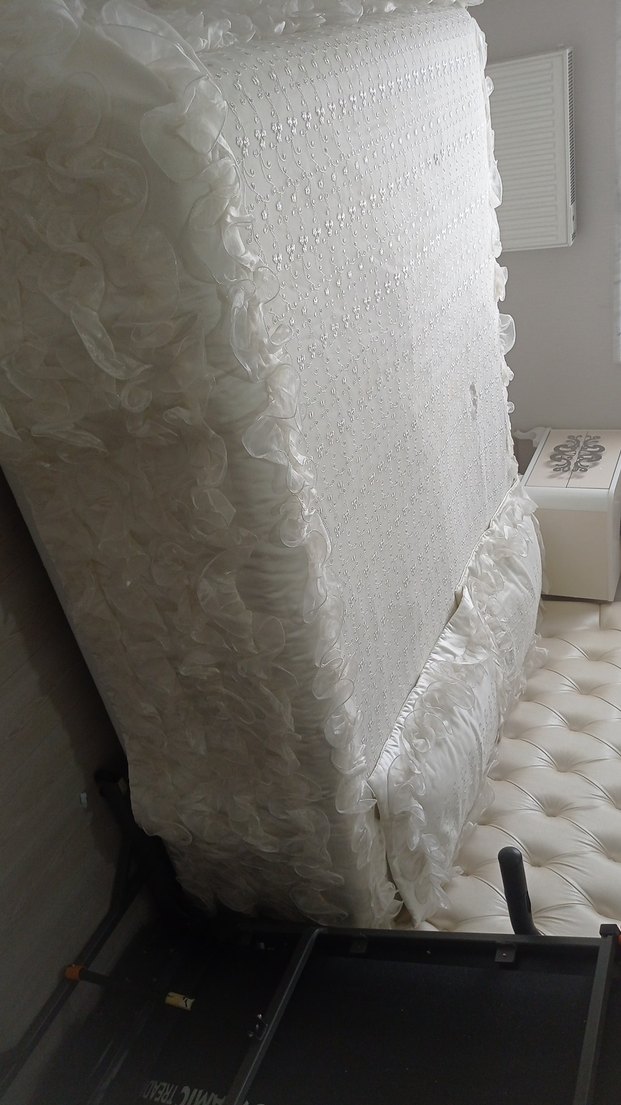 gelinlik model yatak örtüsü son fotoğraftaki gibi bi özrü var o yüzden fiyatı uygun isterseniz takım olarak perdesi de var onun da fiyatı 500 perdenin görünmeyen kısmından küçük bi kumaş kesilip yatak örtüsü tamir edilebilir