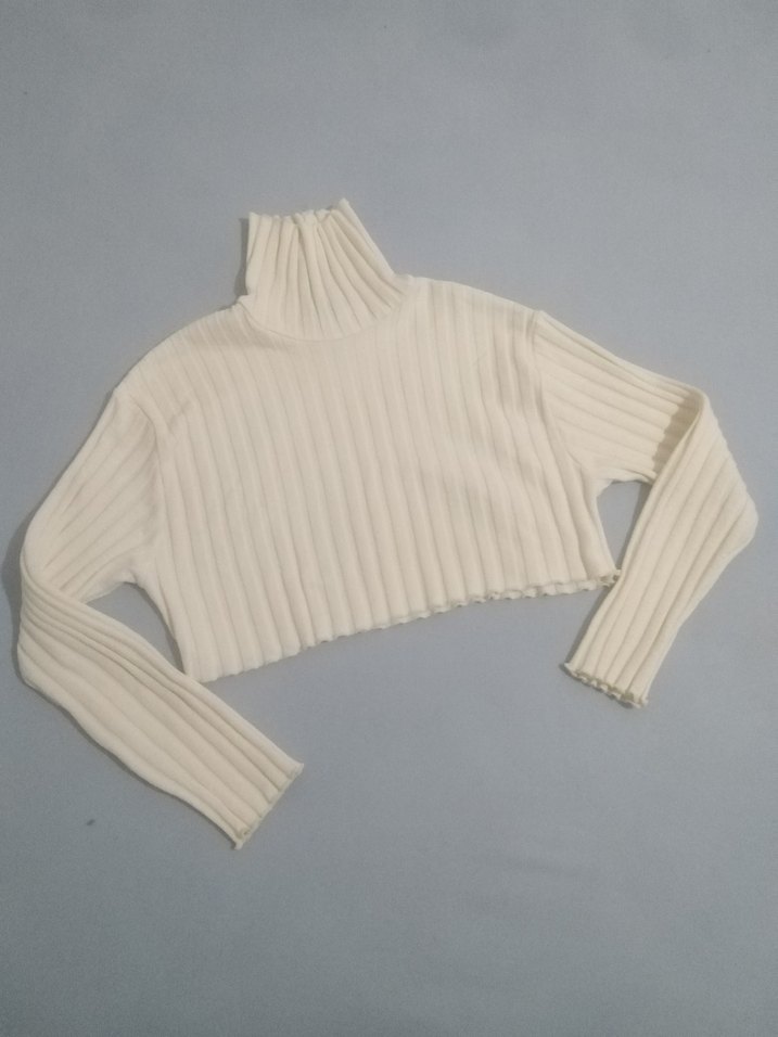 Beyaz, fitilli, boğazlı ve uzun kollu bu kadın kazağı yumuşak örme kumaştan üretilmiştir. Düz ve sade tasarımıyla günlük kullanıma uygundur.