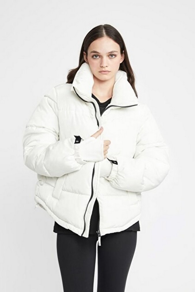 Beyaz, fitilli kadın kışlık mont, pufflu tasarıma sahip, yüksek yakalı ve uzun kolludur. Midi boyda, yumuşak ve sıcak kumaştan yapılmıştır, günlük sokak stiline uygundur. ❄️