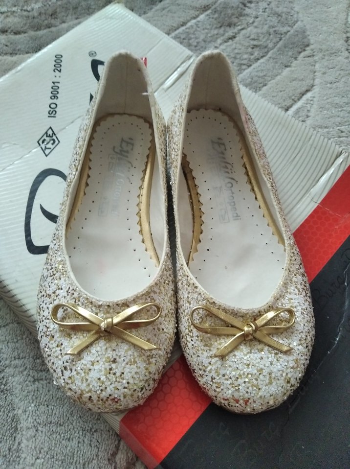 Beyaz kız babetleri, küçük fiyonk detayıyla. Kauçuk malzemeden, klasik tasarımda.