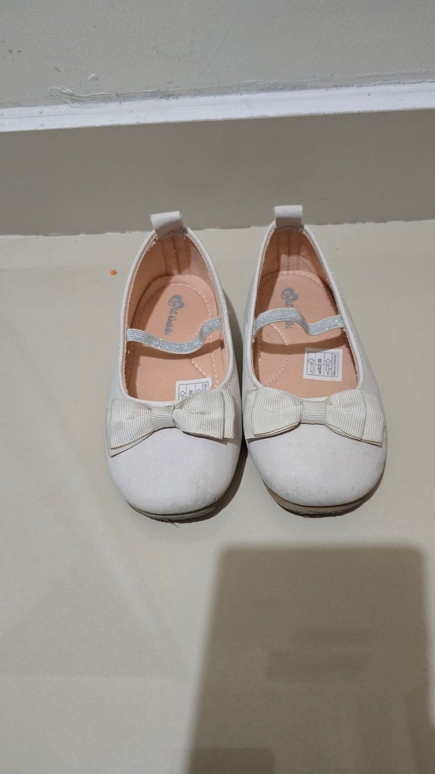Beyaz, fiyonk detaylı kız babeti, yumuşak kauçuk tabanlı ve sade desensiz tasarıma sahip. Çok rahattır. 29 Ekim, 23 Nisan gibi özel günlerde kreşte giydirmek için almıştım