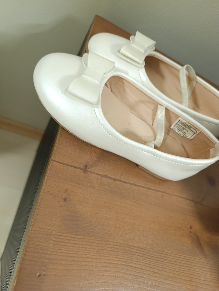 Beyaz renkte, fiyonk detaylı klasik tarzda kız babeti. Kauçuk tabanlı, desensiz ve hafif tasarım.
