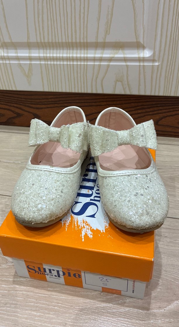 Beyaz renkli, fiyonk detaylı kız babet. yumuşak deridir. Burun kısmında biraz soyulma mevcut başka deformesi yok. Kutusuz göndereceğim