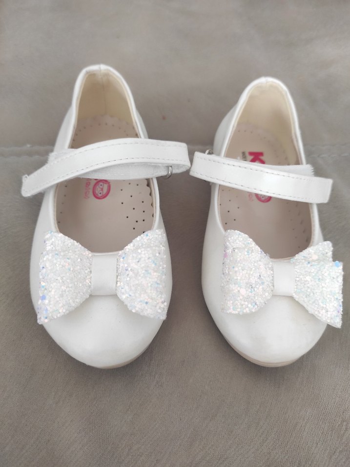 Beyaz Fiyonk Detaylı Kız Çocuk Babet