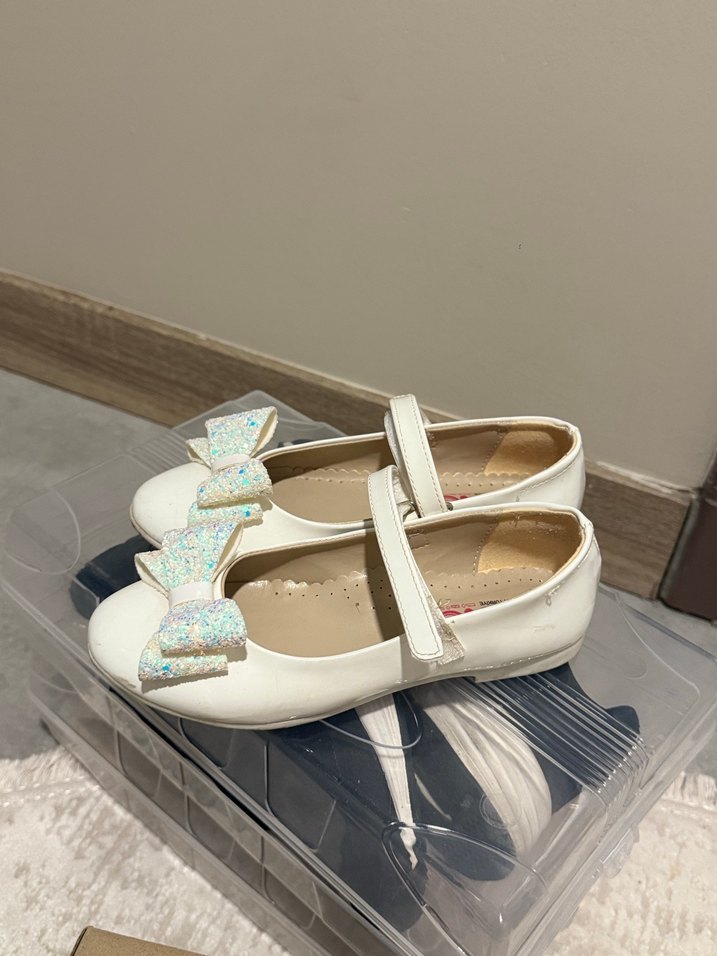 Beyaz Fiyonk Detaylı Kız Çocuk Babet
