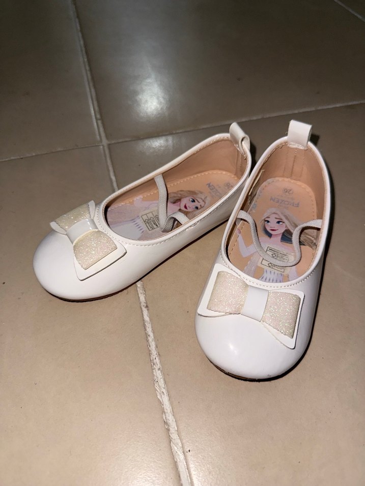 Yalnızca 1 kere doğum gününde giyildi. Beyaz renkte, lastik tabanlı kız çocuk babeti. Üzerinde fiyonk detayı ve iç kısmında pastel renklerde baskı deseni bulunur. Modern klasik tarzda.