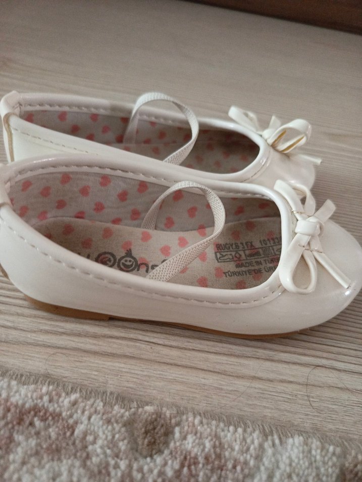 Beyaz Fiyonk Detaylı Kız Çocuk Babet