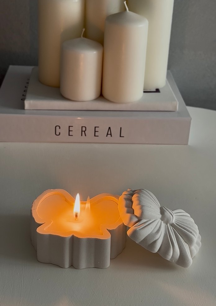 Beyaz fiyonk kapaklı kutu mum