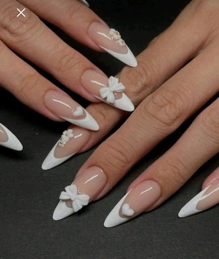 Beyaz Fiyonk ve Kalp Detaylı Tırnak Süslemeleri