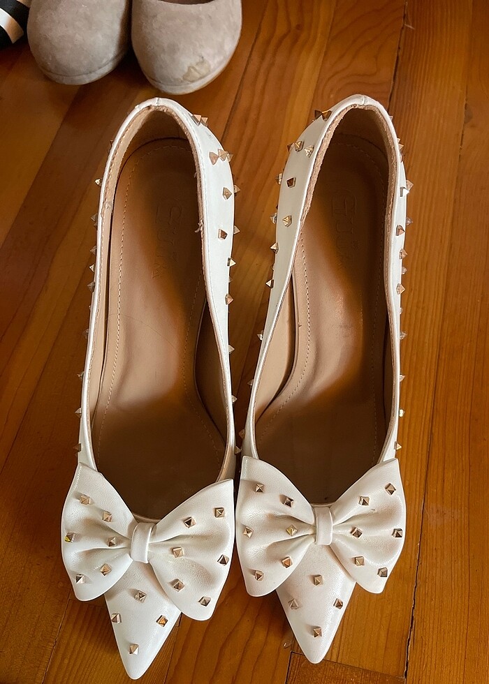 Beyaz Fiyonklu Ayakkabı da Topuk 10cm hiç giyilmedi
