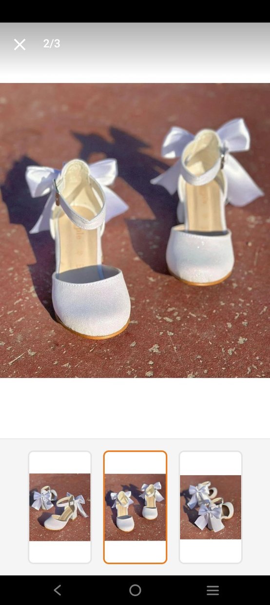 Beyaz, fiyonk detaylı kız topuklu ayakkabı temiz ve bir kez kullanıldı