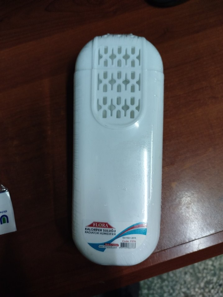 Flora beyaz kalorifer suluğu nemlendirici, havaya nem katmak için tasarlanmıştır. Üstte havalandırma delikleri bulunur.