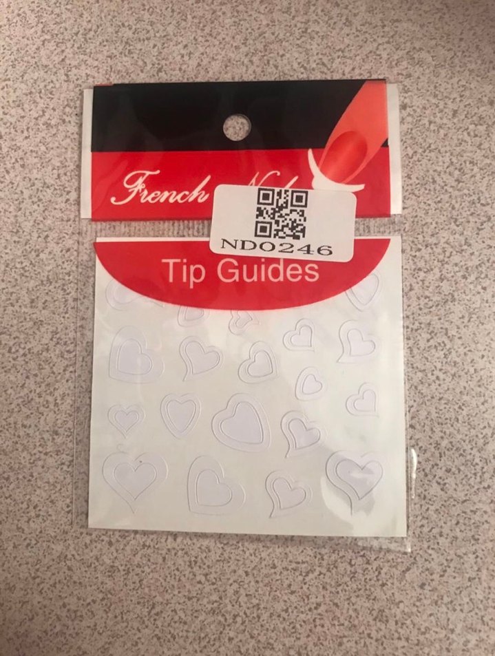 Beyaz kalp desenli Fransız tırnak şablonları, tırnak dekorasyonu için kolay uygulama sağlar.