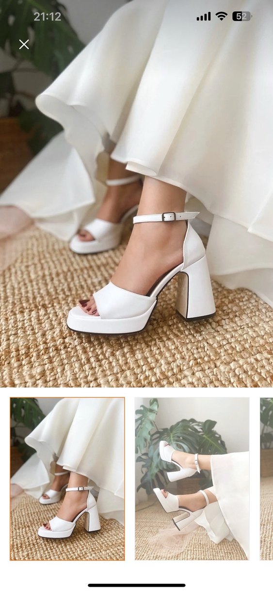 Beyaz, tokalı ve blok topuklu kadın abiye ayakkabı.Polka markasına aittir36 numaradır ancak 37 için uygundur kalıbı bir humara büyük bir ayakkabı.Düğünümde giydim çok rahat ettim kusuru yoktur