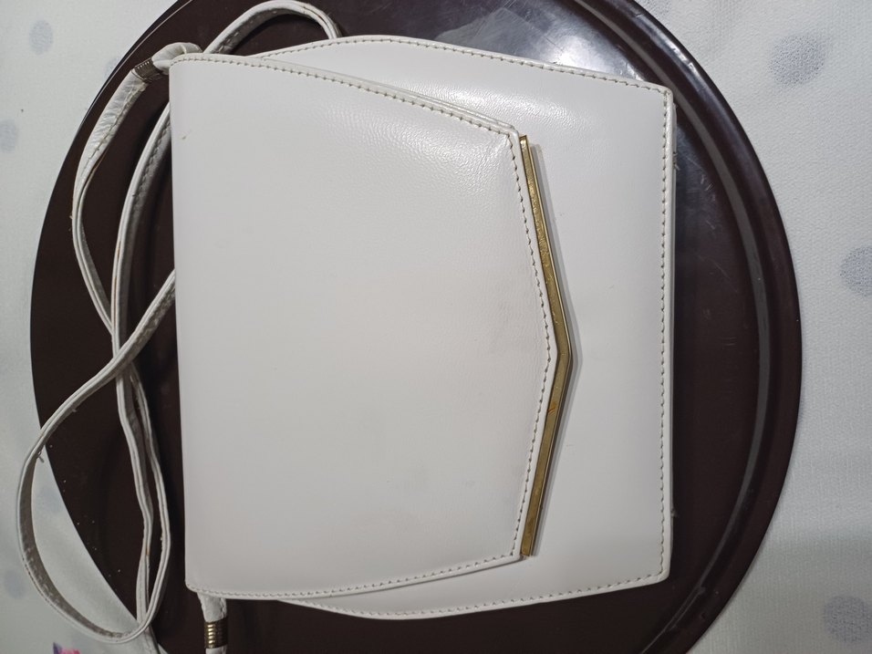 Beyaz gerçek deri kadın omuz çantası, kapaklı, yüzey ve modern klasik tarzda, günlük ve abiye kullanımı için uygun. Minimalist ve zarif tasarım.